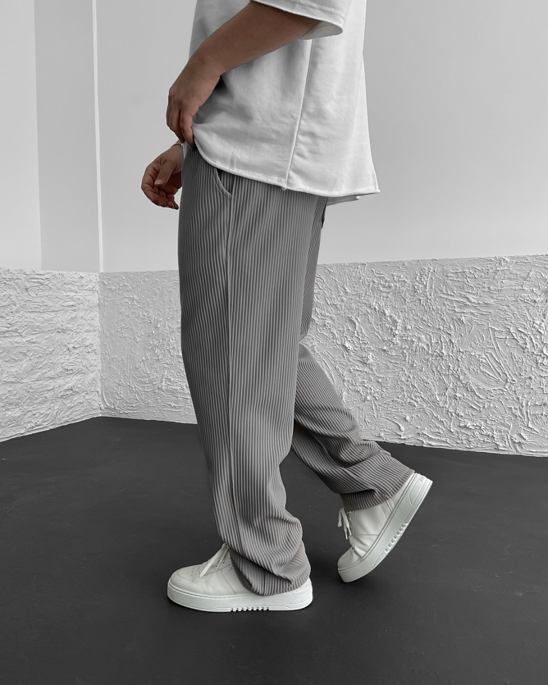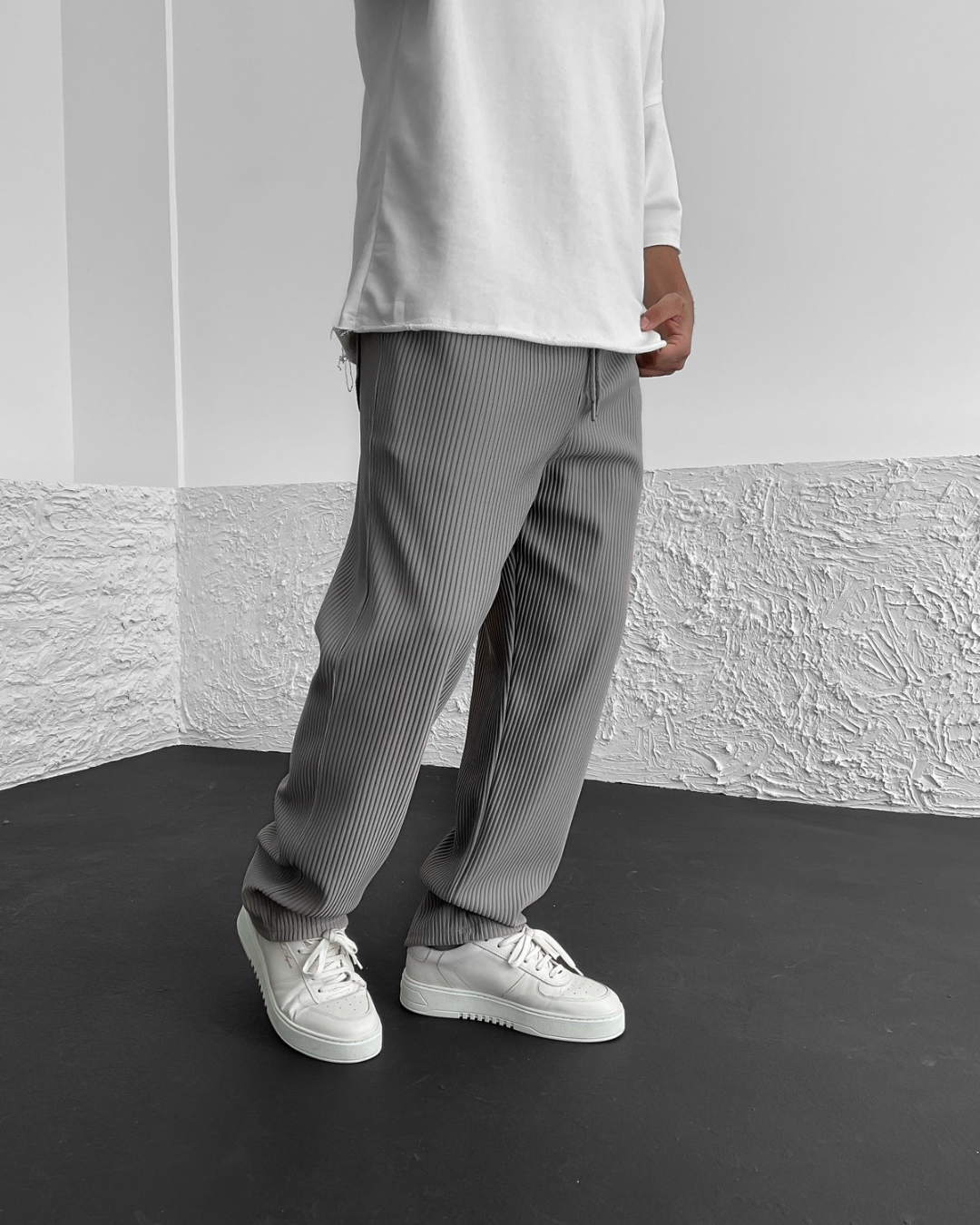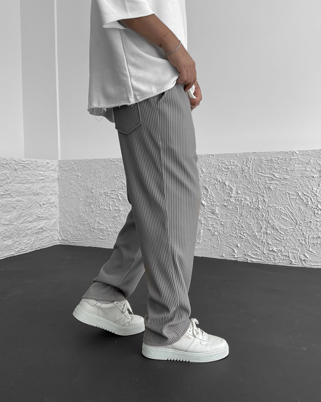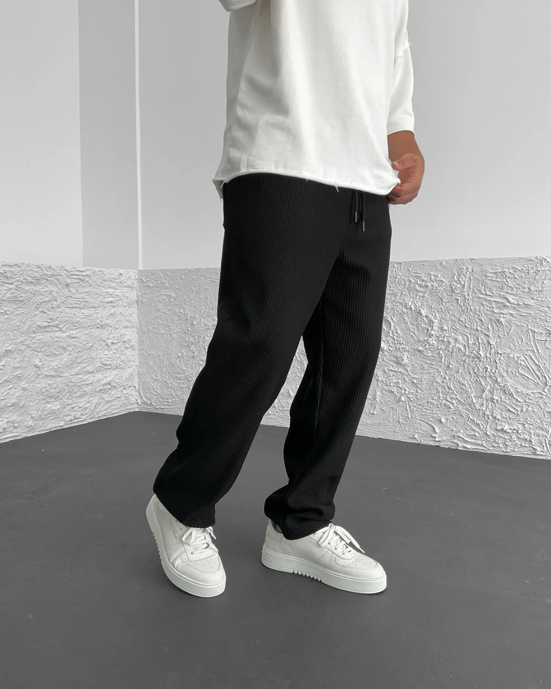 O design canelado traz um toque moderno, tornando estas calças uma escolha essencial para um guarda-roupa contemporâneo e prático.